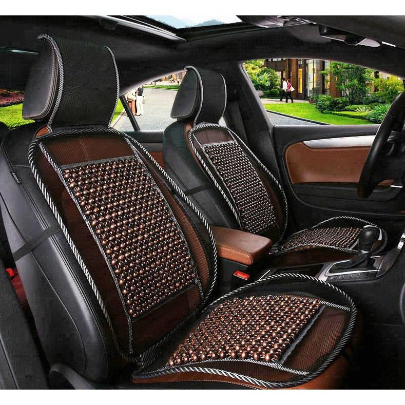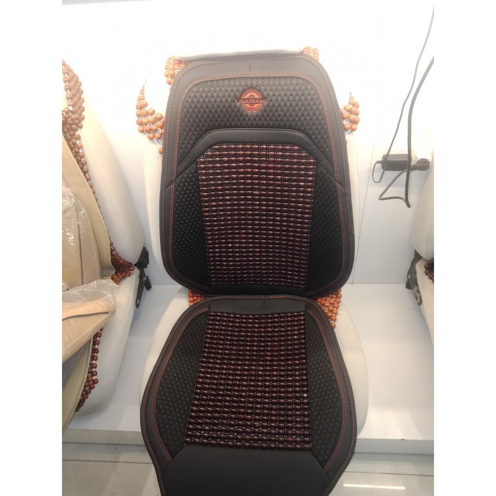 Bộ áo ghế ô tô lót liền hạt gỗ da cao cấp phủ 1 ghế trước, có đan hạt gỗ chống nóng, massage lưng