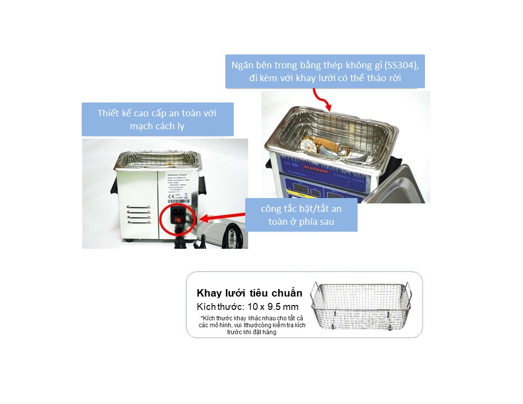 Đặc trưng của GT SONIC-T2 Bể rửa siêu âm 2 lít có gia nhiệt: - Điều khiển công suất chế độ siêu âm bình thường và nhẹ, đặc điểm này có thể làm sạch các