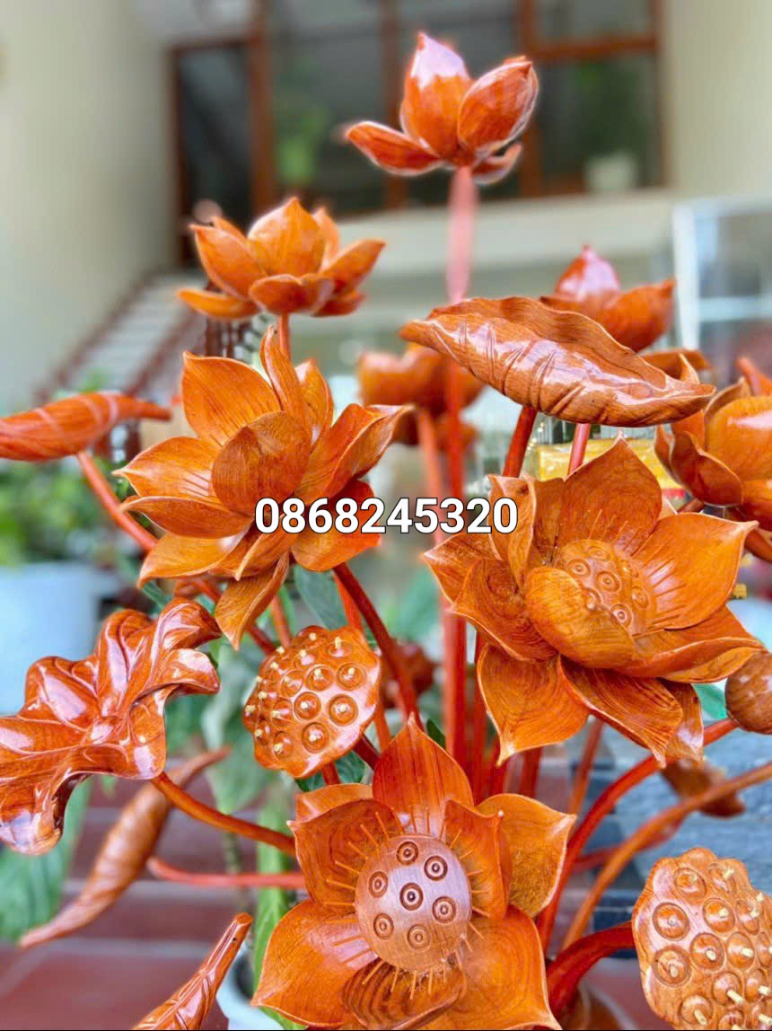 Cặp bình hoa sen gỗ hương đỏ đẹp 25 bông |zalo em hùng 0982638426