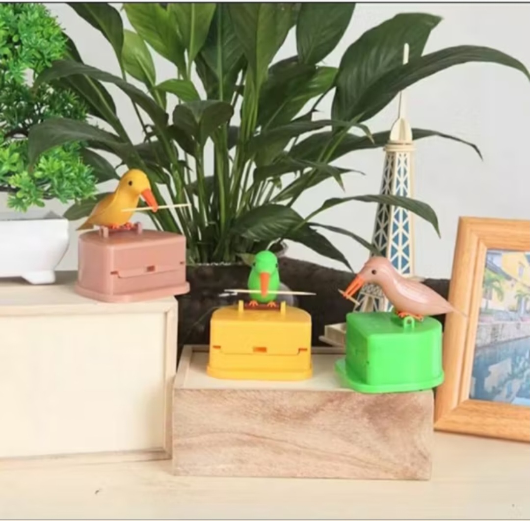 Mô hình nhỏ gọn nhưng ẩn chứa bên trong hộp đựng tăm thông minh chú chim mổ tăm là cả một kiệt tác khoa học – Với lực đẩy của lò xo được gắn vào thân chú chim chỏ, mỗi đợt bạn ấn đầu chim xuống, que tăm lập tức bật ra khỏi vị trí và chú chim có nhiệm vụ gắp que tăm đó chờ bạn sử dụng – Được làm từ chất liệu nhựa cao cấp, không độc hại, an toàn với người sử dụng – Có chú chim nhỏ trên bàn như một vật trang trí tuyệt đẹp, dễ thương và cực kỳ độc đáo – Một chú chim nhỏ màu sắc rực rỡ có thể tự gắp lấy tăm và dâng lên cho chủ nhân của nó, thật tuyệt vời khi bạn sở hữu chú chim thông minh này đúng không nào?