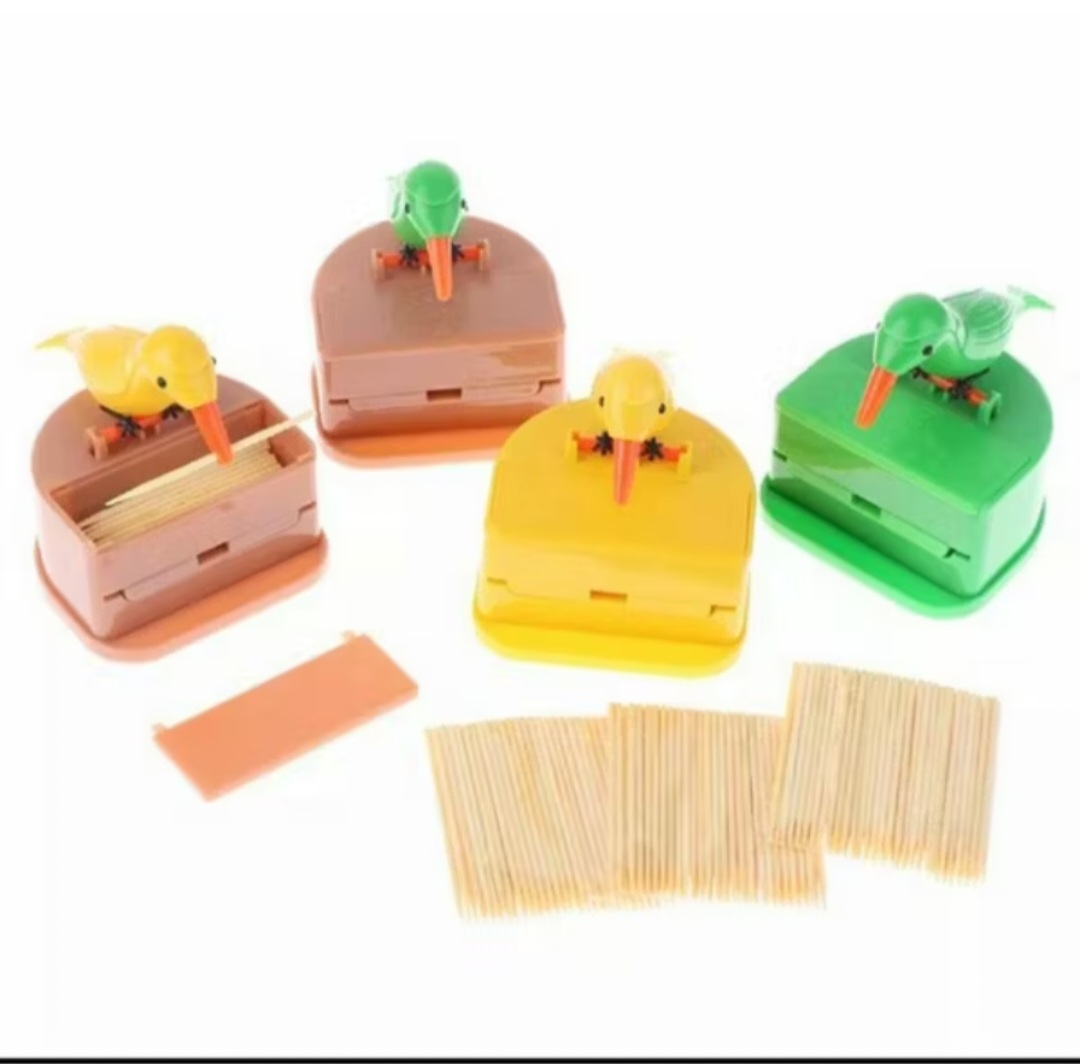 Mô hình nhỏ gọn nhưng ẩn chứa bên trong hộp đựng tăm thông minh chú chim mổ tăm là cả một kiệt tác khoa học – Với lực đẩy của lò xo được gắn vào thân chú chim chỏ, mỗi đợt bạn ấn đầu chim xuống, que tăm lập tức bật ra khỏi vị trí và chú chim có nhiệm vụ gắp que tăm đó chờ bạn sử dụng – Được làm từ chất liệu nhựa cao cấp, không độc hại, an toàn với người sử dụng – Có chú chim nhỏ trên bàn như một vật trang trí tuyệt đẹp, dễ thương và cực kỳ độc đáo – Một chú chim nhỏ màu sắc rực rỡ có thể tự gắp lấy tăm và dâng lên cho chủ nhân của nó, thật tuyệt vời khi bạn sở hữu chú chim thông minh này đúng không nào?