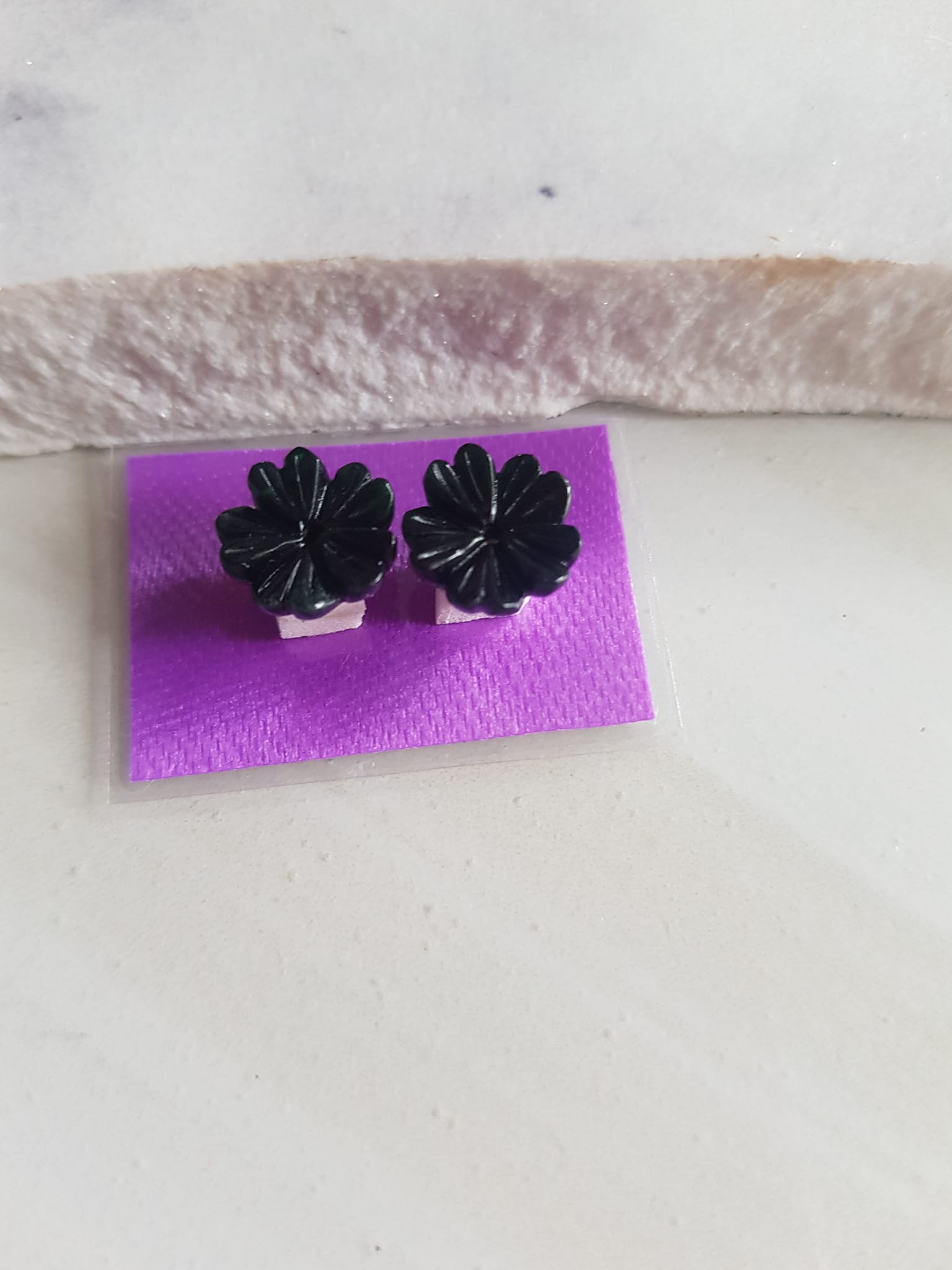 Đôi bông tai mới bông hồng nổi cao sịn đẹp xanh Ngọc tươi size đk 9,5mm x Cao 5mm Chất liệu đá ngọc cẩm thạch tự nhiên xanh ngọc tươi đều sịn bóng mượt đẹp