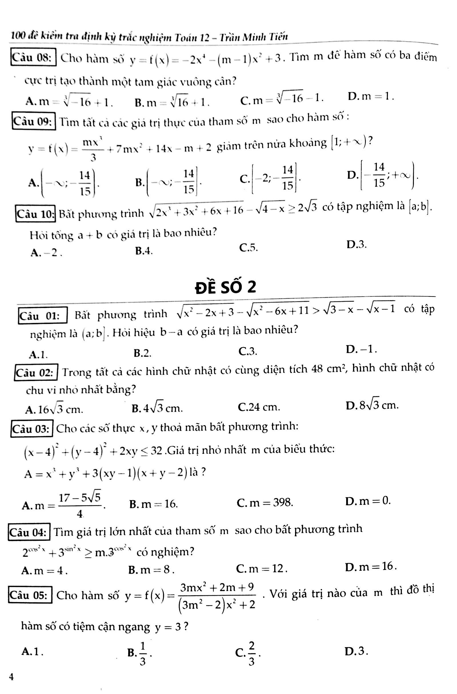 Mua tại Tiktok100 Đề Kiểm Tra Định Kì Trắc Nghiệm Toán Lớp 12