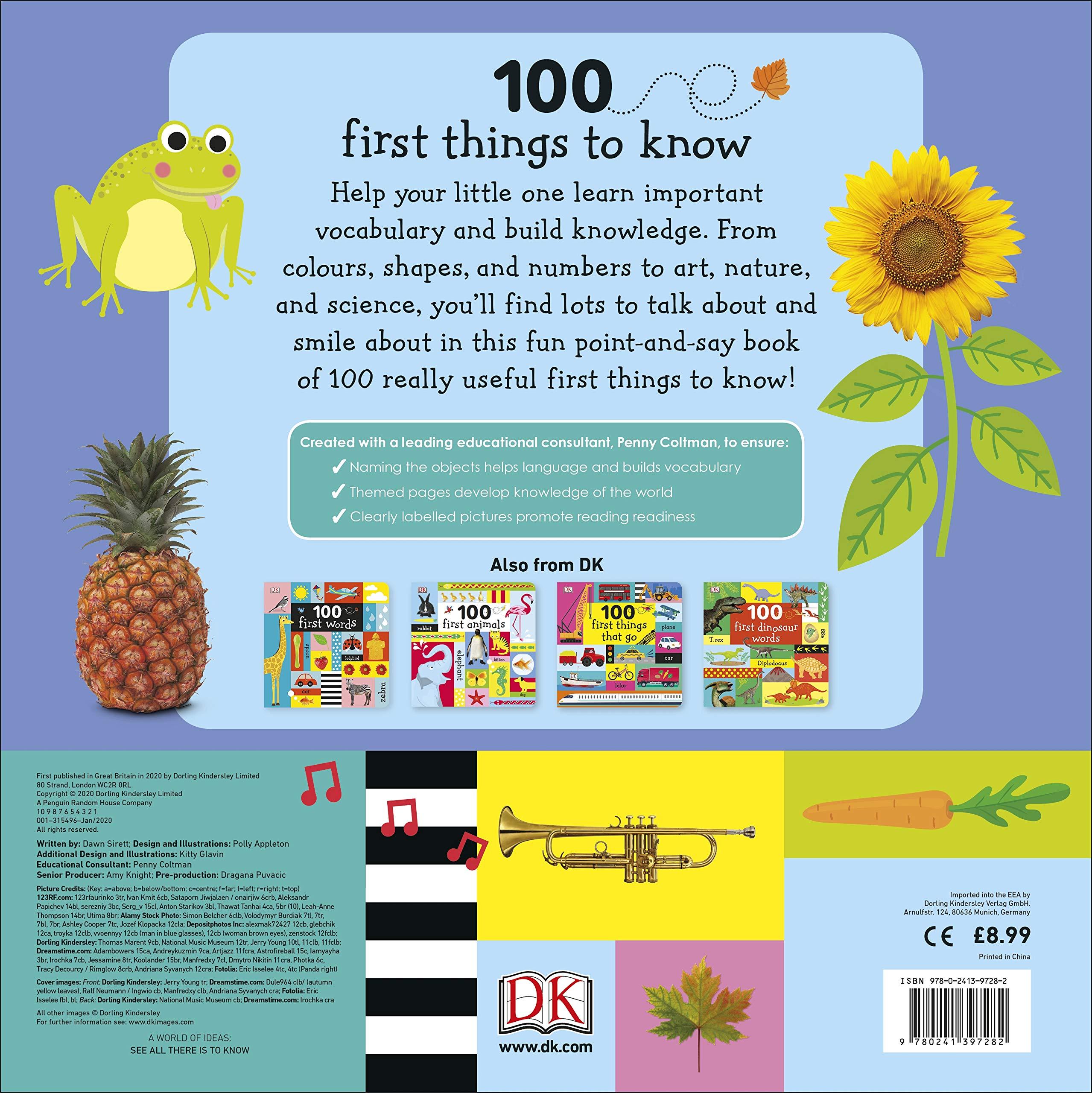 100 First Things To Know 100 carefully curated, useful things that will stimulate your baby or toddler's natural curiosity about the world around Help your little one learn important vocabulary and build knowledge with this