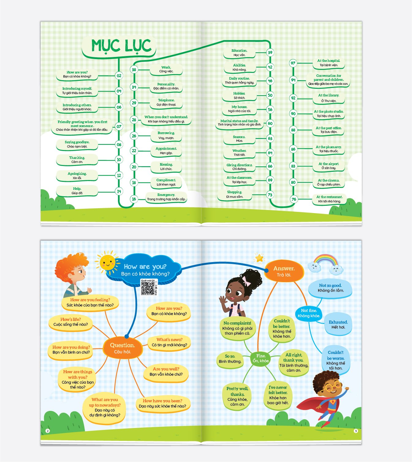 1001 MẪU CÂU TIẾNG ANH GIAO TIẾP THÔNG DỤNG - THEO SƠ ĐỒ TƯ DUY MIND MAP (Dành cho trẻ em) - KÈM THEO FILE ĐỌC TIẾNG ANH GIỌNG CHUẨN BẢN ĐỊA – QUÉT MÃ QR