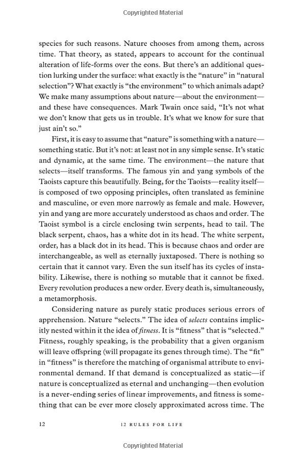 Drawing on vivid examples from the author's clinical practice and personal life, cutting edge psychology and philosophy, and lessons from humanity's oldest myths and stories, 12 Rules for Life offers a deeply rewarding antidote to the chaos in our lives: eternal truths applied to our modern problems.