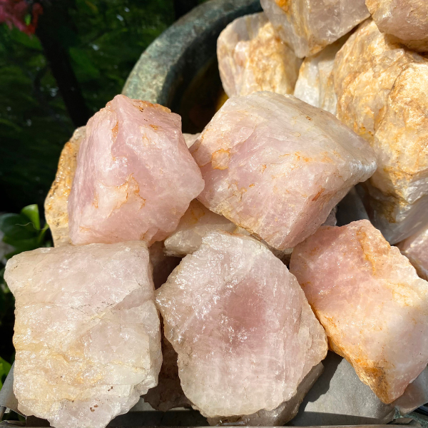 Đá thạch anh thô vụn hồng cỡ 4x6cm để rải nền trấn trạch, gia công thành cục chặn giấy, vòng đeo tay, làm vật trang trí để bàn. Có tác dụng giúp trấn trạch, tránh tà khí, cân bằng năng lượng, ổn định ...