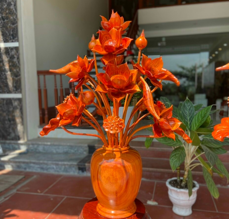 Đỉnh cao Bình Hoa Sen bằng gỗ trắc đỏ đen - trang trí bàn thờ, phòng khách ngày tết 2022