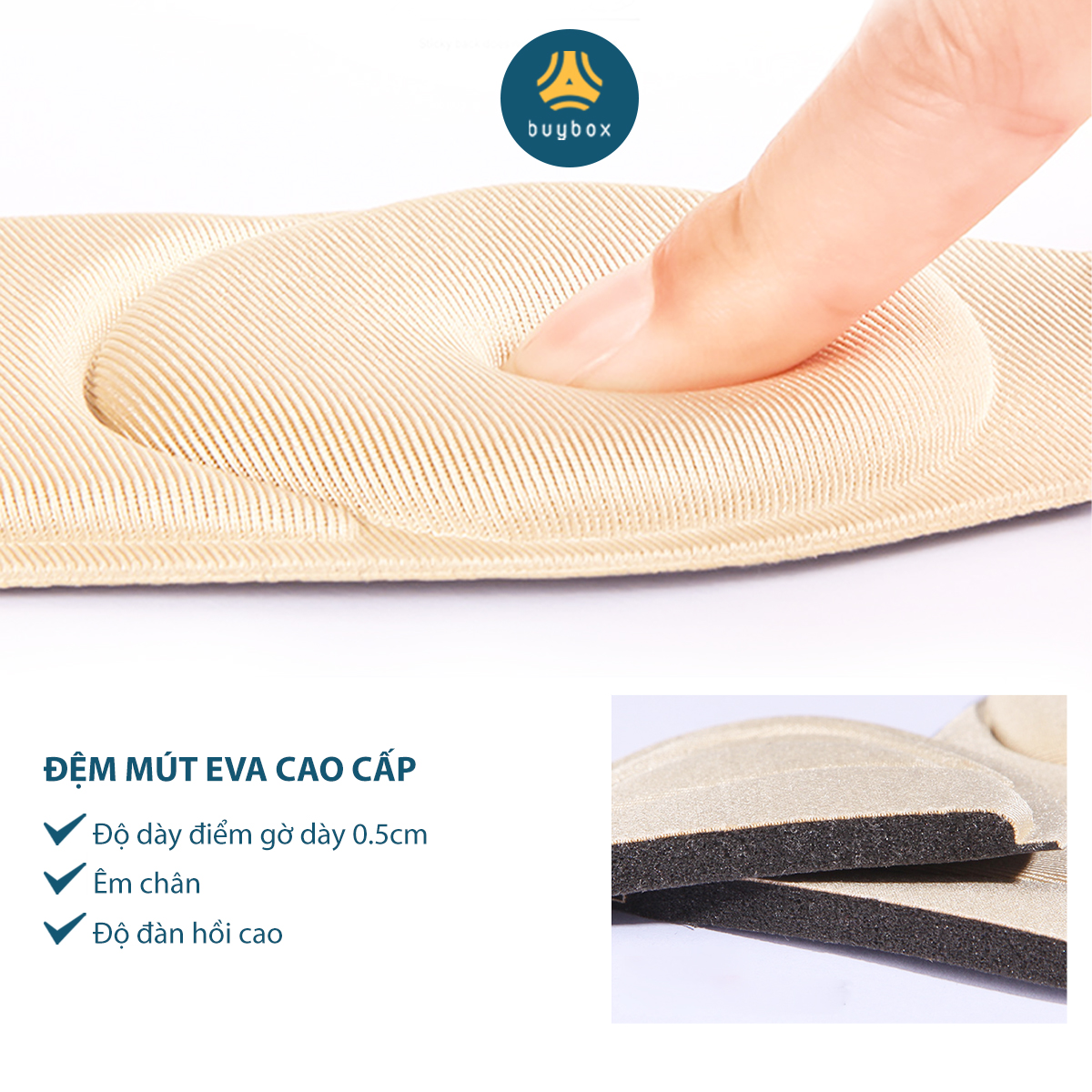 - Đặt lót đa năng vào giày, tháo giấy có keo phía sau để định phần lót gót cố định vào giày Lưu ý: Sản phẩm mang thương hiệu buybox có bao bì in logo và hướng dẫn sử dụng chi tiết đi kèm.