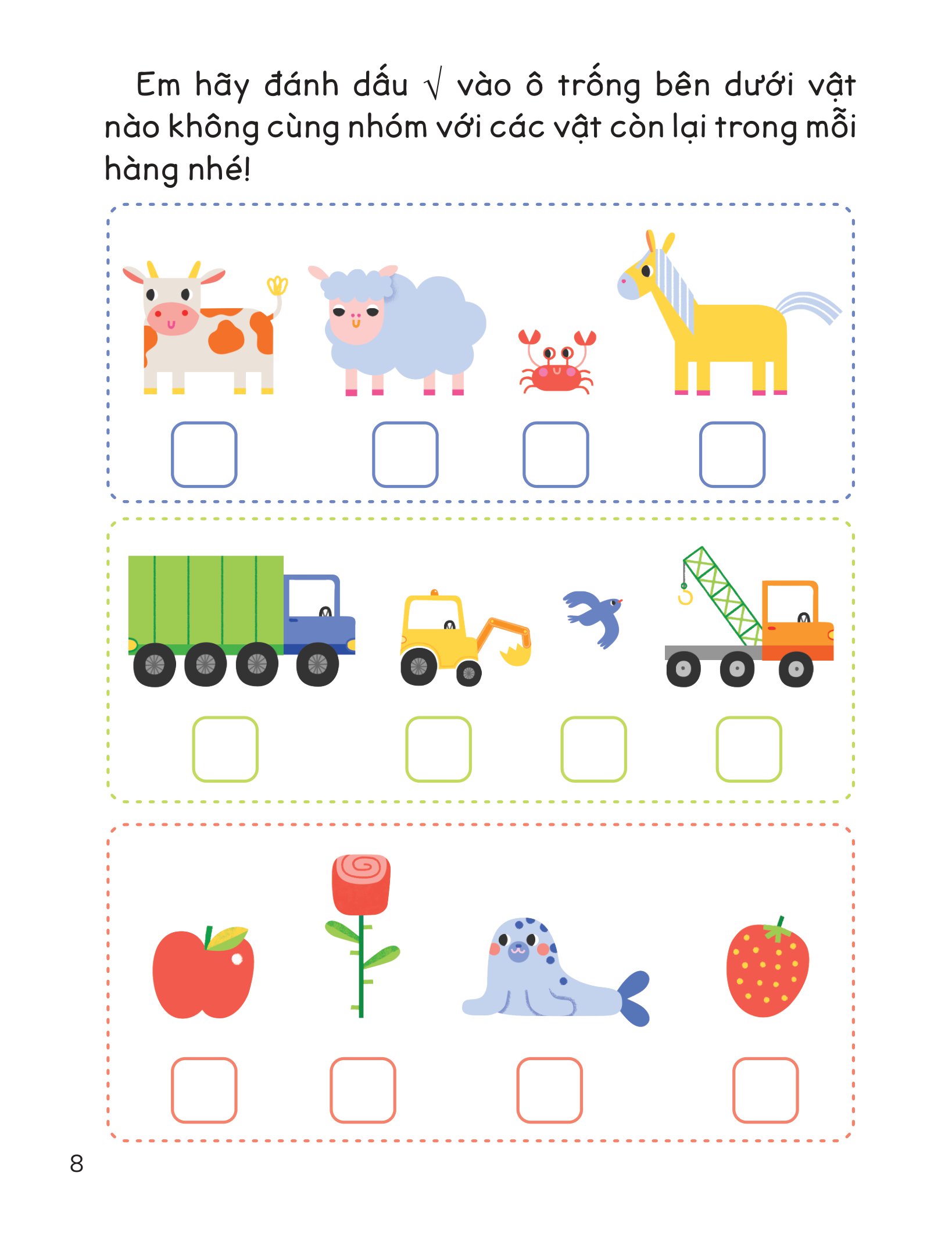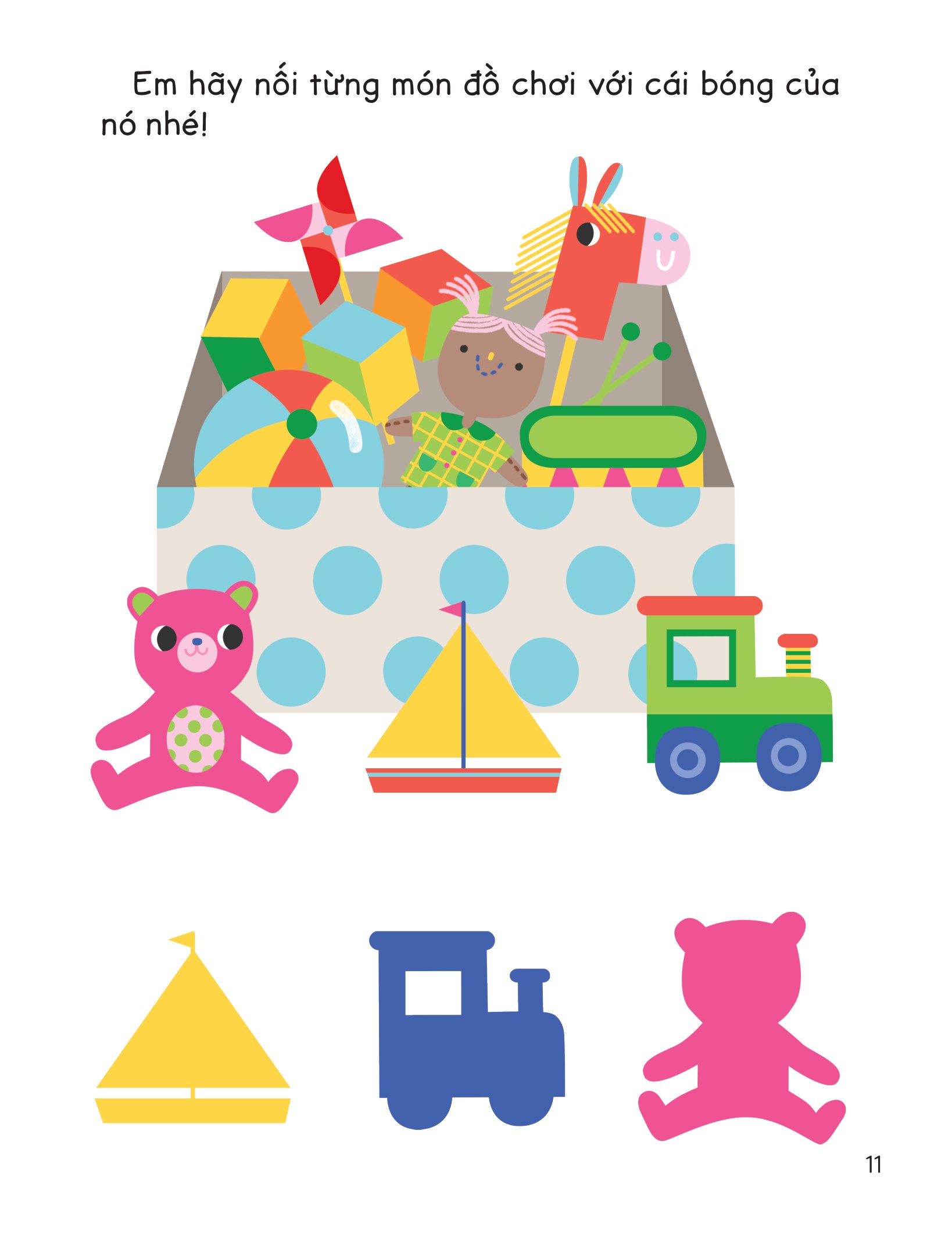 Đồng thời, các hoạt động trong sách cũng kích thích trí não của em, giúp em phát triển nhận thức thị giác, kỹ năng vận động tinh và sự phối hợp tay-mắt đấy.