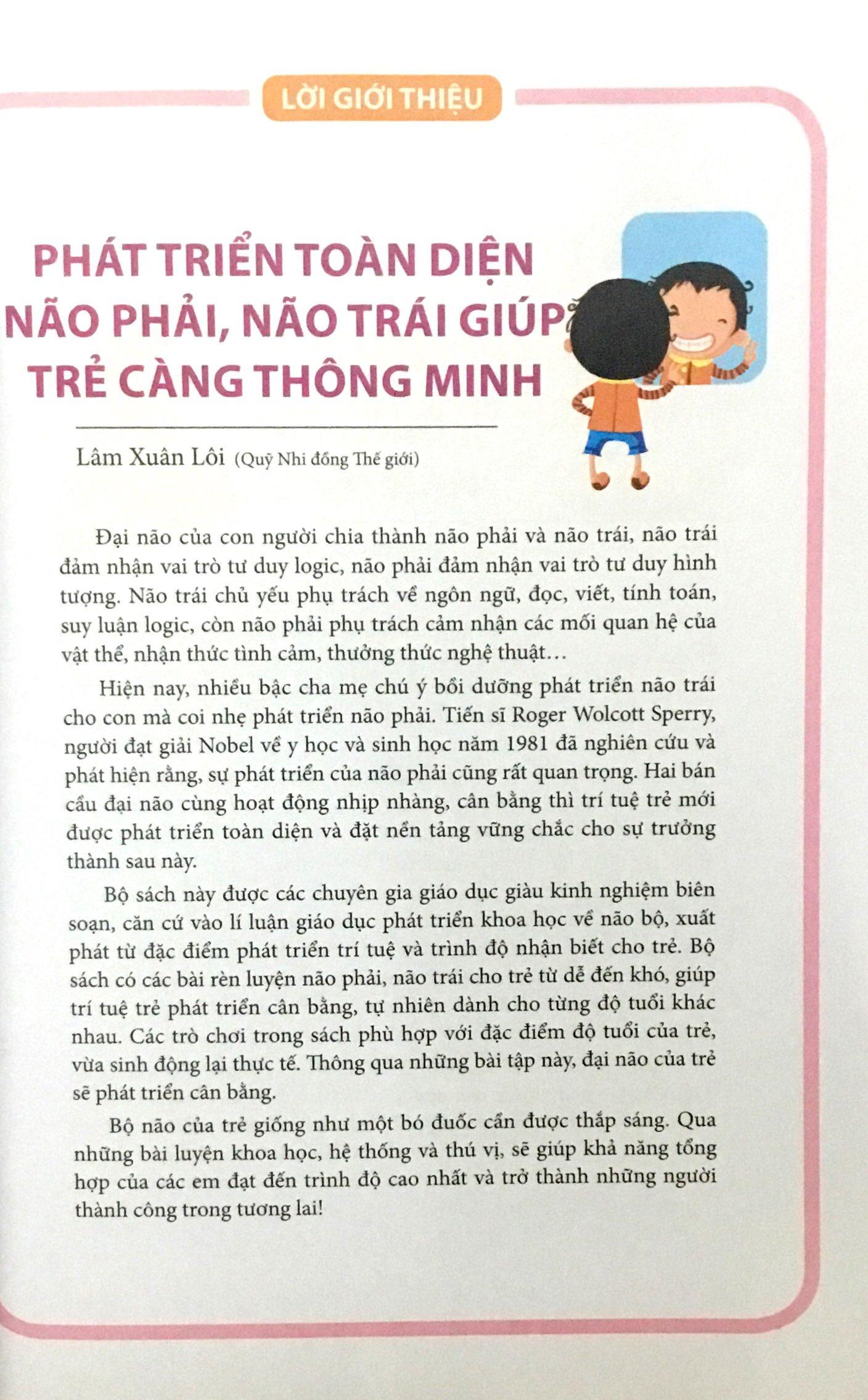 Mua tại Tiktok300 Trò Chơi Phát Triển Trí Tuệ Cho Trẻ 5 Tuổi (Tái Bản) Hiện nay, nhiều bậc cha mẹ thường chú trọng bồi dưỡng phát triển não trái cho con mà coi nhẹ phát triển não phải. Tiến sĩ Roger Wolcott Sperry, người đạt giải Nobel về y học đã nghiên cứu và phát hiện ra rằng, sự phát triển của não phải cũng rất quan trọng. Hai bán cầu đại não cùng hoạt động nhịp nhàng, cân bằng thì trí tuệ trẻ mới phát triển toàn diện về mặt nền tảng vững chắc cho sự trưởng thành sau này.