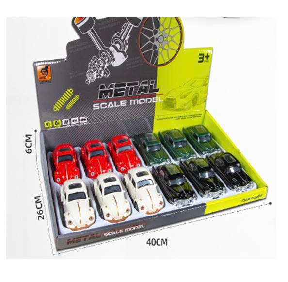 1087-8 – Mô hình ô tô sắt 12 xe/hộp (KT 7.3x2.7x2.5cm) Mô hình ô tô 1087-8 gồm 12 xe trong một hộp, với thiết kế mô phỏng nhiều kiểu dáng xe khác nhau. Kích thước