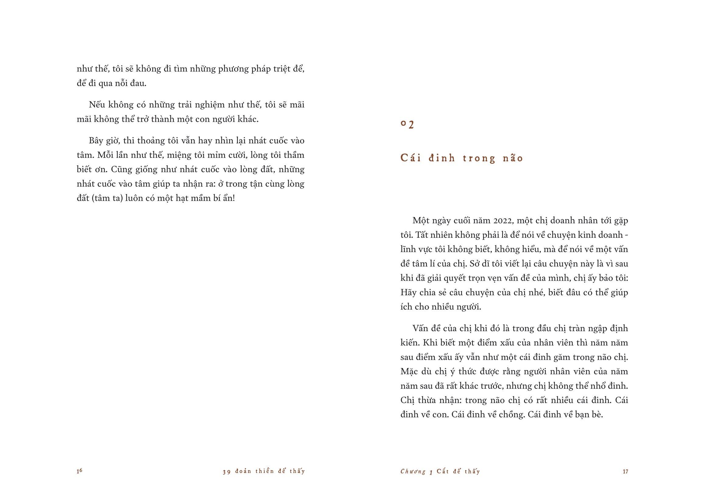 Là những đoản văn, ghi lại cảm nhận của tác giả bằng con mắt thiền, 39 Đoản Thiền Để Thấy - Những Câu Chuyện Chữa Lành là những suy tư tưởng chừng vụn vặt, nhưng đầy sâu lắng về cuộc đời và con người. Mặc dù tác giả sử dụng giọng viết rất giản dị, khiêm nhường, nhưng bạn đọc vẫn có thể nhận được ở đây những triết lí sâu sắc, những bài học mới mẻ về cuộc đời, phát hiện ra những điều vĩ đại đằng sau những cái đời thường, để sống bình tĩnh hơn, cảm nhận cuộc sống đầy đủ và trọn vẹn hơn.