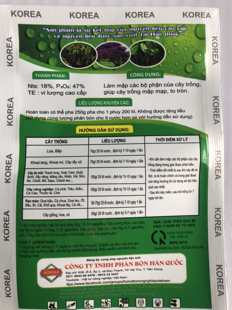 PHÂN BÓN TĂNG TRƯỞNG : GIÚP CÂY TRỒNG RA ĐỌT NON LỚN LÁ , LƠN TRÁI DÀI THÂN THÀNH PHẦN : ĐẠM : 30 % LÂN : 10% KALI : 10 %