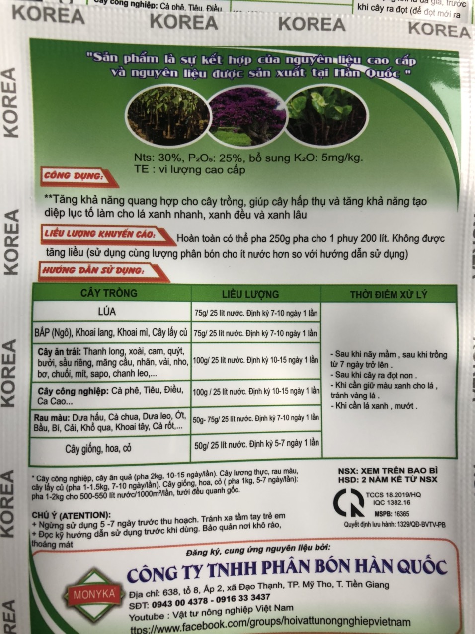 Phân bón tăng trưởng nhanh - TAN HOÀN TOÀN NÊN RẤT THÍCH HỢP PHUN TƯỚI , TƯỚI NHỎ GIỌT TIẾT KIỆM CÔNG LÀM THÌ RẢI 5-50 G / GỐC thành phần : đạm : 30%