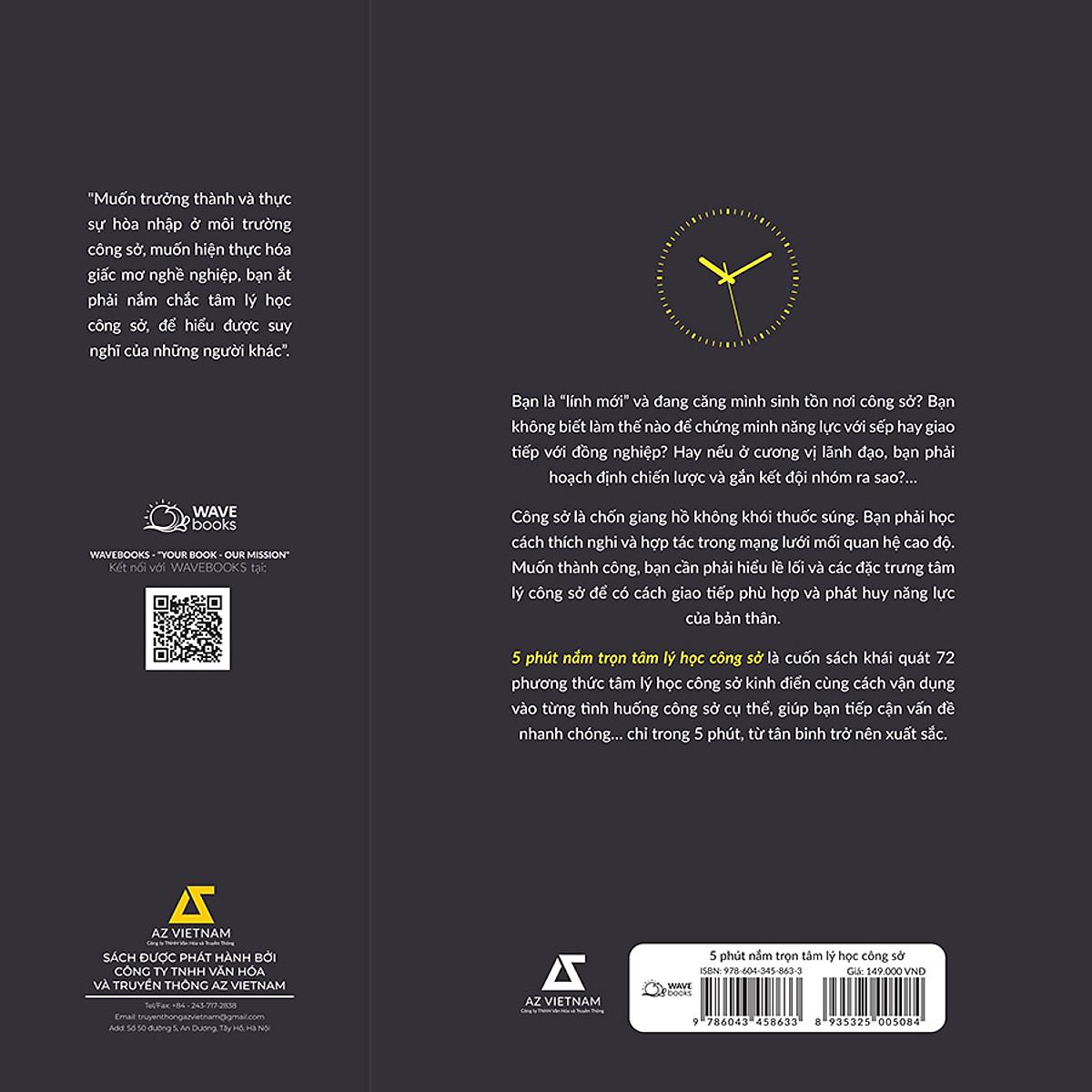 5 phút nắm trọn tâm lý học công sở là cuốn sách đặc biệt viết tặng dân công sở, giúp các bạn bách chiến bách thắng, bất khả chiến bại nơi công sở!