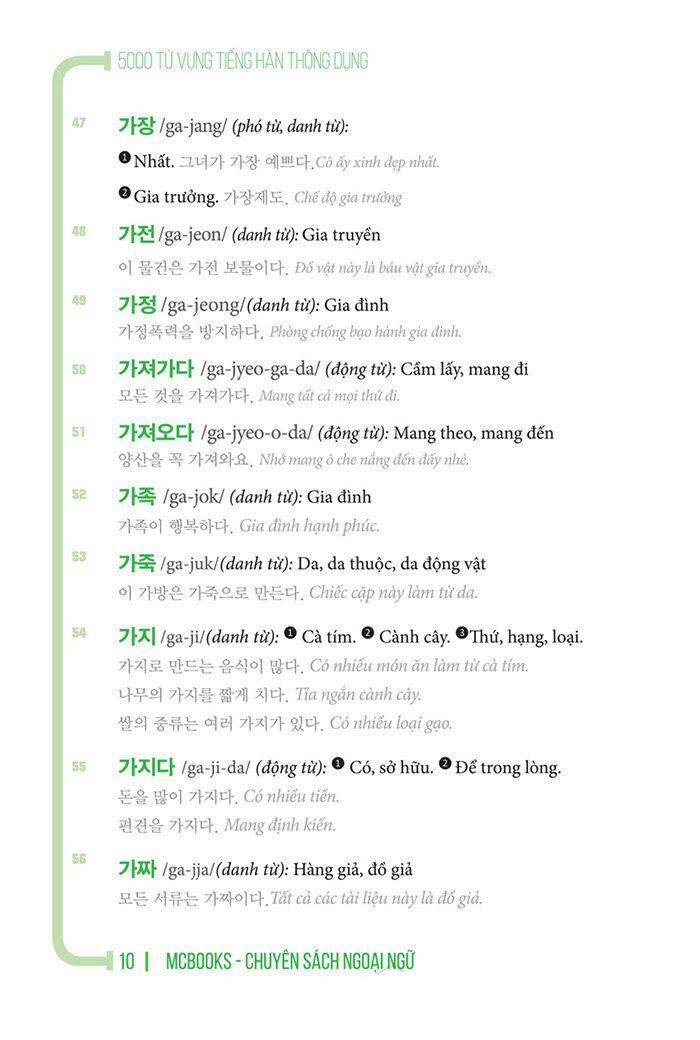 Nhằm đáp ứng nhu cầu học từ vựng của các bạn, với “5000 từ vựng tiếng hàn thông dụng” của nhóm tác giả The Changmi do MCBooks phát hành có đủ đầy, toàn diện mọi mặt vốn từ vựng cơ bản nhất bạn phải cần biết trong tiếng hàn.