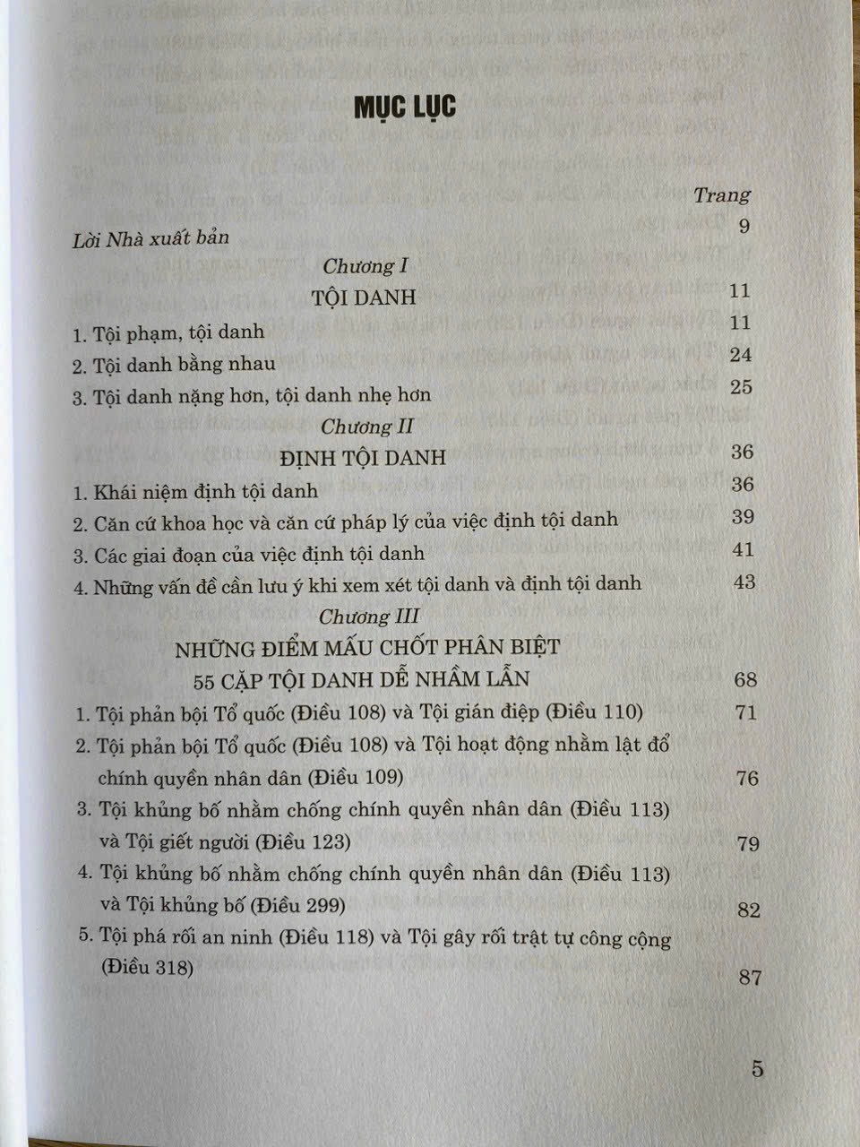 Nhằm đáp ứng nhu cầu của bạn đọc, năm 2022 cuốn sách đã được xuất bản lần thứ hai với tên gọi 55 cặp tội danh dễ nhầm lẫn trong Bộ luật Hình sự (hiện hành). Để tiếp tục phục vụ bạn đọc, Nhà xuất bản xuất bản lần thứ ba với những sửa đổi, cập nhật văn bản mới và bổ sung một số cặp tội danh mới hay nhầm lẫn trong thời gian gần đây (các tội liên quan đến “tín dụng đen”, tội phạm về chứng khoá) cho một số cặp khác mang tính ổn định để phục vụ thực tiễn áp dụng, cũng như có thêm tư liệu tham khảo hữu ích cho các cán bộ nghiên cứu, làm công tác thực tiễn và người hành nghề luật ở nước ta hiện nay.