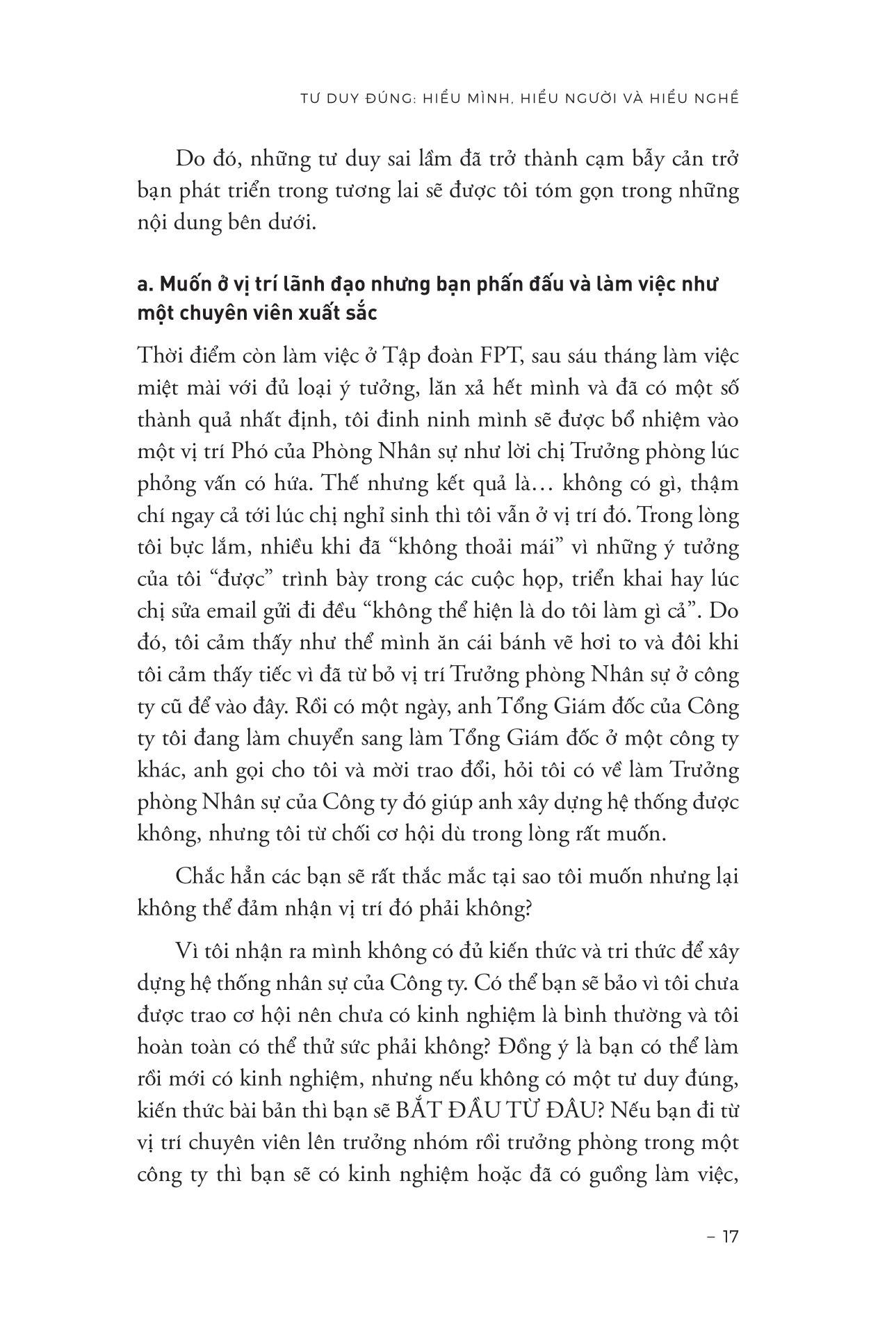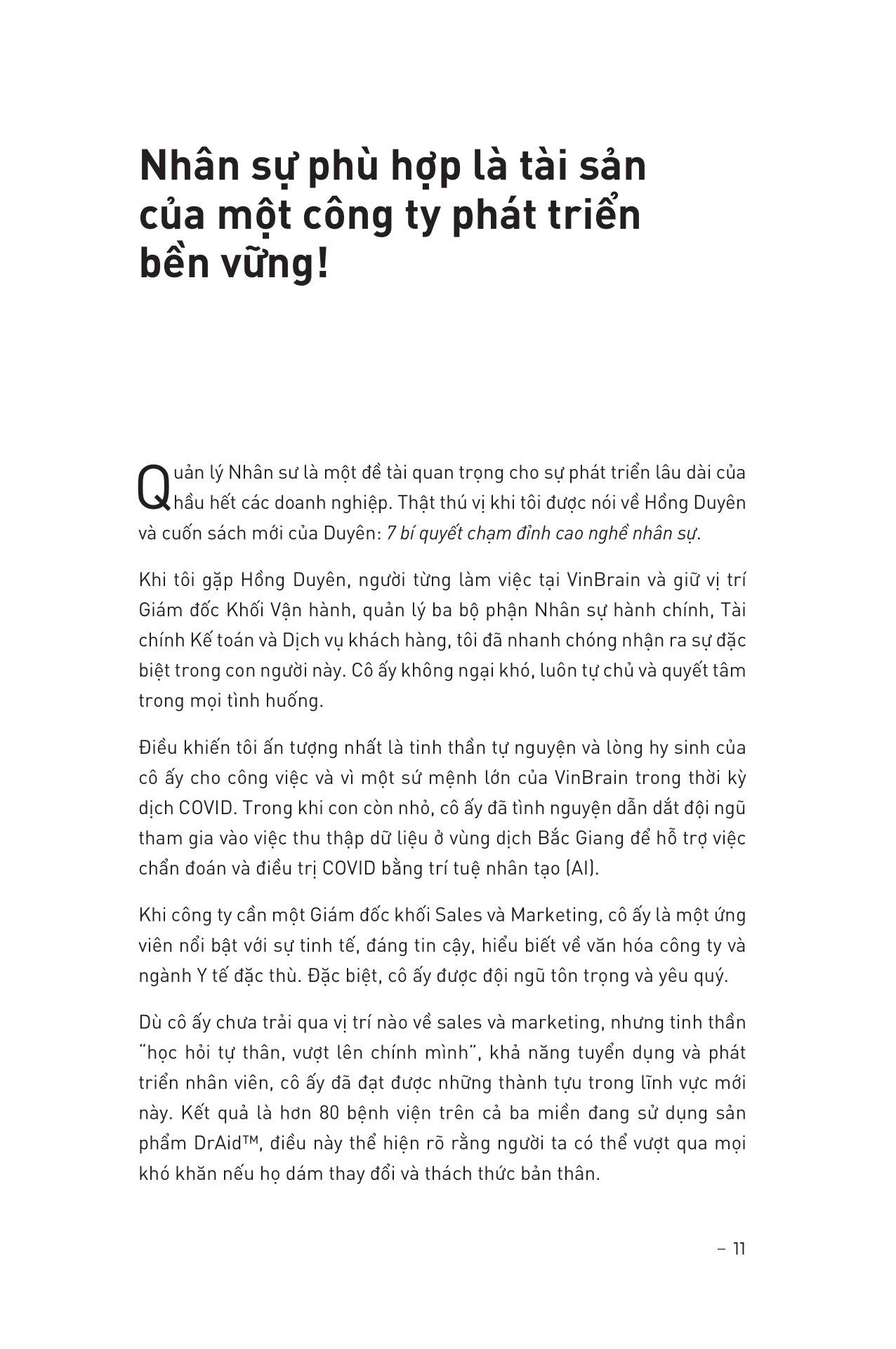Cuốn sách được viết với sự say mê, nhiệt tình, nhằm mong muốn có thể truyền đi tinh thần làm nghề, giúp độc giả có những hình dung về lộ trình phát triển của nghề nhân sự, và từng bước “chạm” đến hành trình phát triển của cá nhân.