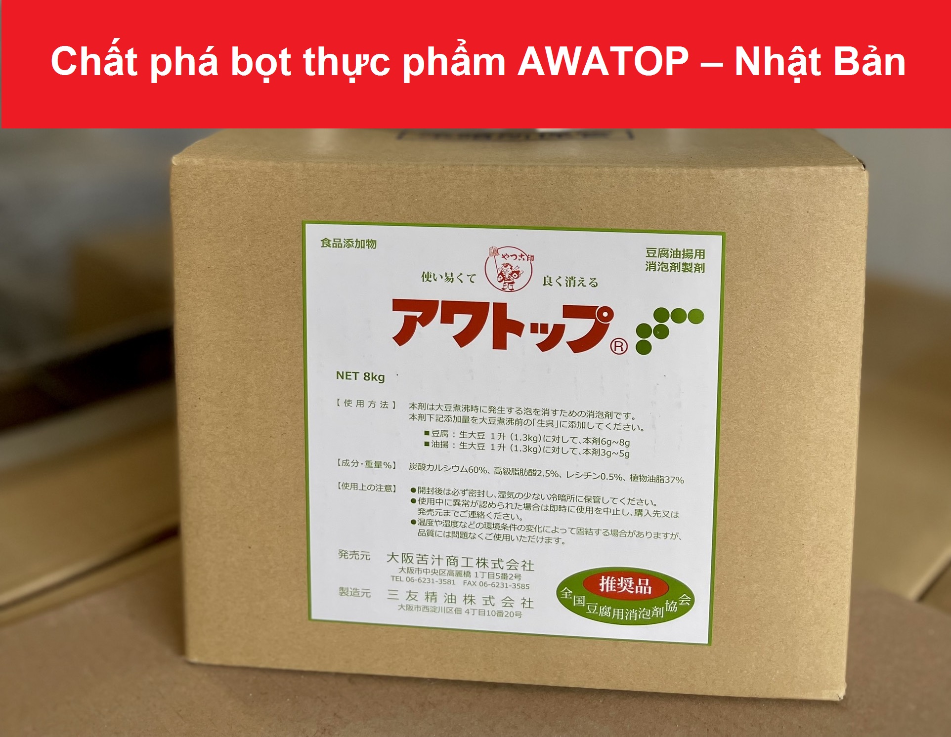 AWATOP Nhật Bản phụ gia thực phẩm phá bọt sữa đậu nành tăng độ béo cho đậu hũ đậu phụ, thùng 8kg.