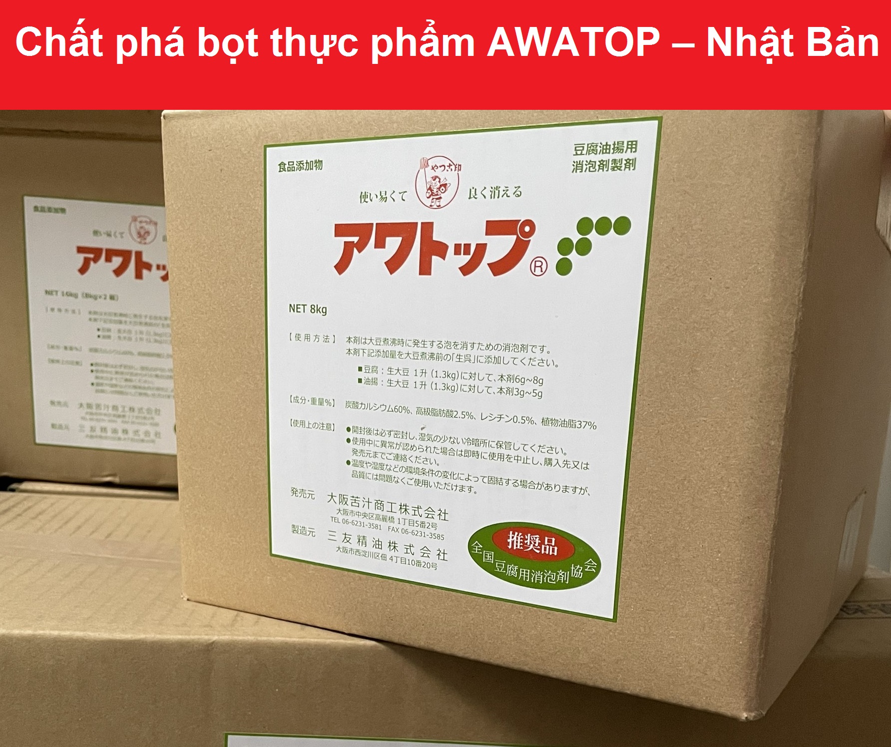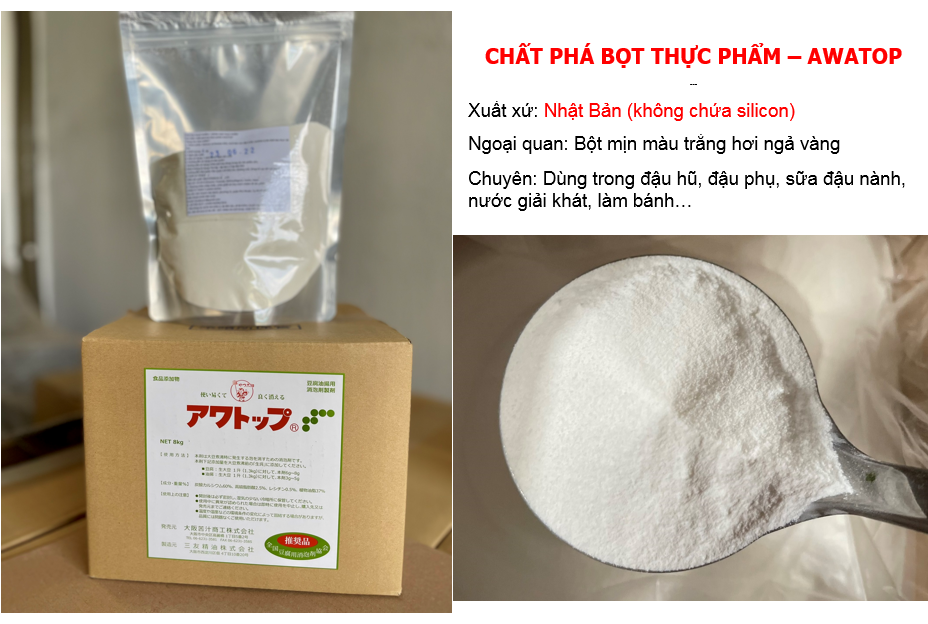 : Phá bọt sữa đậu nành, tan bọt sữa đậu nành, chất nhũ hoá, AWATOP Nhật, phụ gia đậu hũ, AWATOP Nhật Bản, chất phá bọt thực phẩm, chống tạo bọt thực phẩ