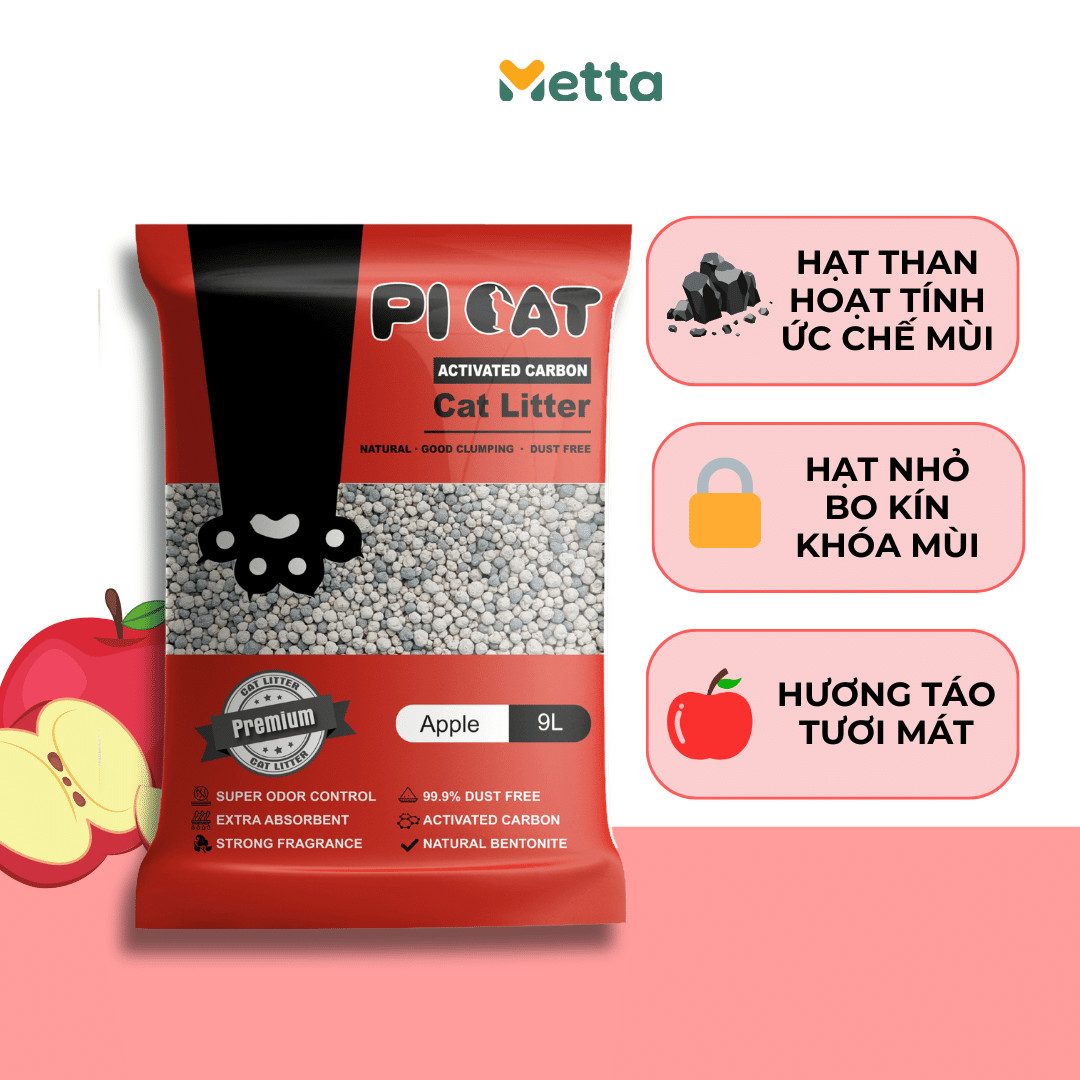- Cát vệ sinh cho mèo PiCat túi 9L, làm 100% đất sét tự nhiên mix carbon hoạt tính