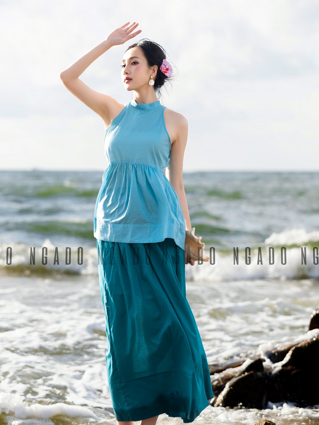 ✨Áo yếm xanh ngọc NGADO , Áo kiểu nữ , Áo thiết kế