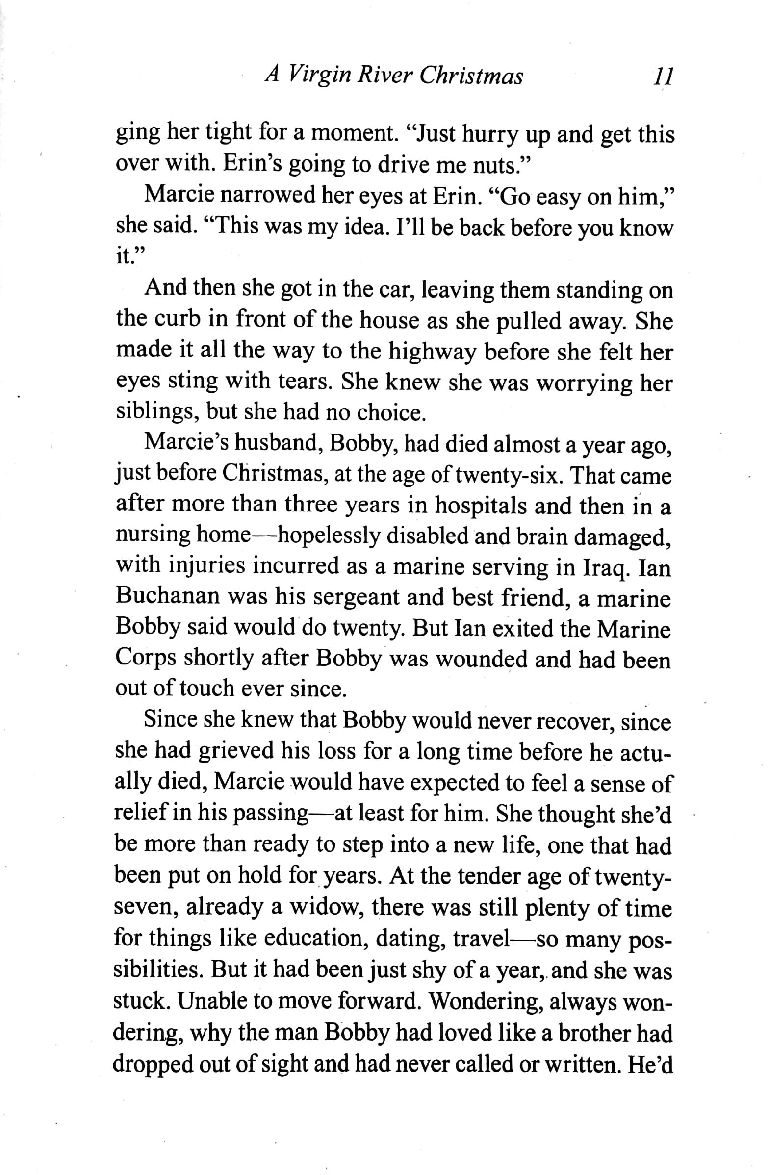 Last Christmas Marcie Sullivan said a final goodbye to her husband, Bobby. This Christmas she’s come to Virgin River to find the man who saved his life and gave her three more years to love him.