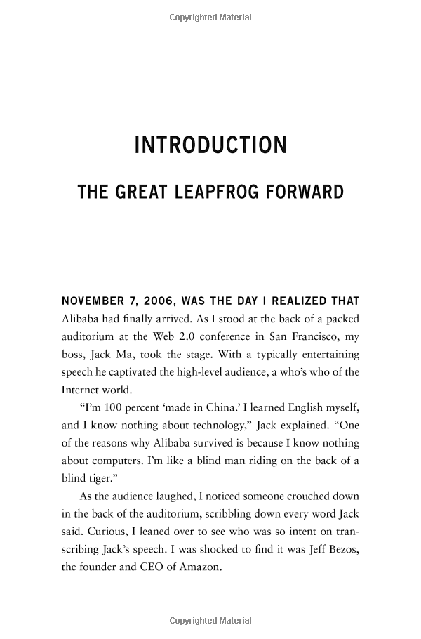In September 2014, a Chinese company that most Westerners had never heard of held the largest IPO in history - bigger than Google, Facebook and Twitter combined. Alibaba, now the world's largest e-commerce company, mostly escaped Western notice for over ten years, while building a customer base larger than Amazon's, and handling the bulk of e-commerce transactions in China. How did it happen? And what was it like to be along for such a revolutionary ride?