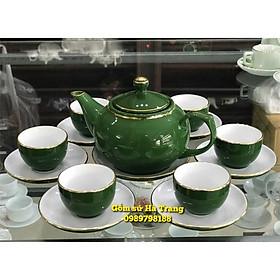 Ấm chén Bát Tràng men xanh Ngọc lục bảo viền vàng cao cấp - ấm chén Bát Tràng cao cấp