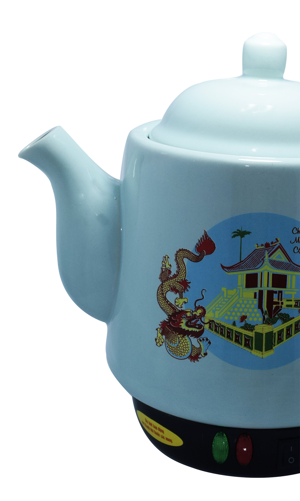 Dung tích: 2.8 L- Công suất: 450W- Thân ấm thiết kế với hoa văn ông già - củ sâm- Nguồn gốc sứ từ làng gốm Bát Tràng nổi tiếng- Chất liệu gốm được nung ở
