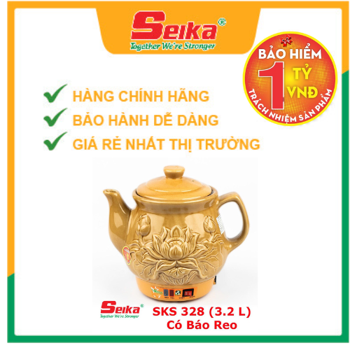 Ấm Sắc Thuốc Seika 3.2L - SKS328 (Gốm Sứ Bát Tràng) được làm từ gốm được nung ở nhiệt độ 1300 độ hoàn toàn khử hết chì trong đất. Men phủ ấm hoàn toàn là men tự nhiên, nguồn gốc sứ hoàn toàn được làm từ làng gốm Bát Tràng nổi tiếng của Việt Nam, ấm không nứt bể khi nấu với nhiệt độ cao, không biến dạng hay mất màu theo thời gian.