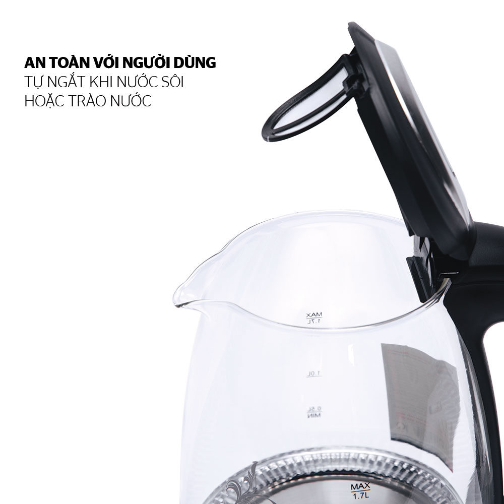 Bình có đèn Led hiển thị chế độ đun nóng, rơ-le tự động ngắt khi sôi và khi bị trào nước. Ngoài ra còn có bộ phận bảo vệ chống rò điện nên an toàn cho người sử dụng.
