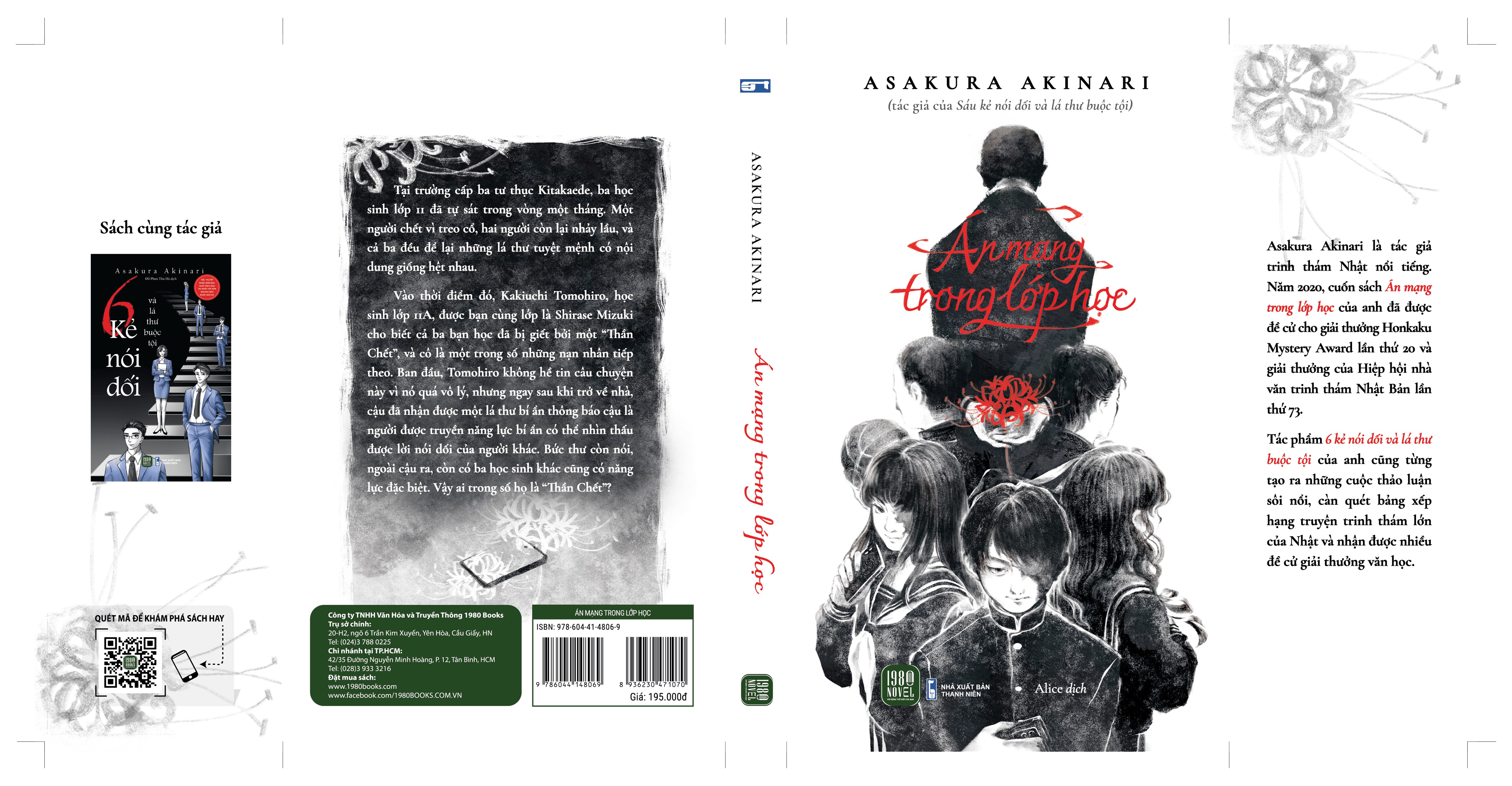 Asakura Akinari là một trong những tác giả trinh thám nổi tiếng tại Nhật Bản. Năm 2020, tác phẩm “Án mạng trong lớp học” của anh đã được đề cử cho giải thưởng Honkaku Mystery Award lần thứ 20 và giải thưởng của Hiệp hội nhà văn trinh thám Nhật Bản lần thứ 73.