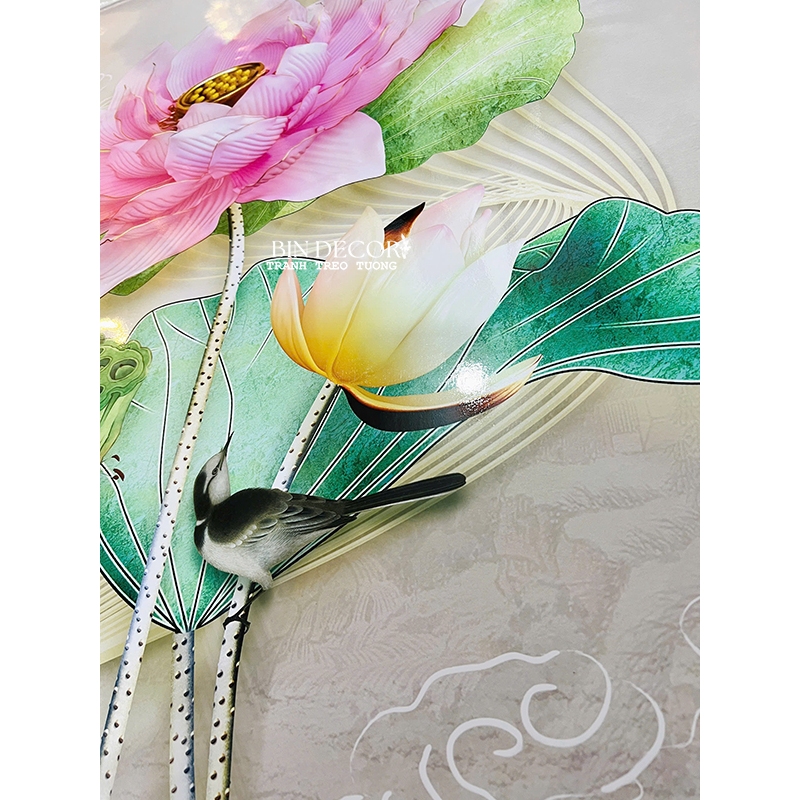 Tranh dán tường 3d Hoa sen khổ dọc