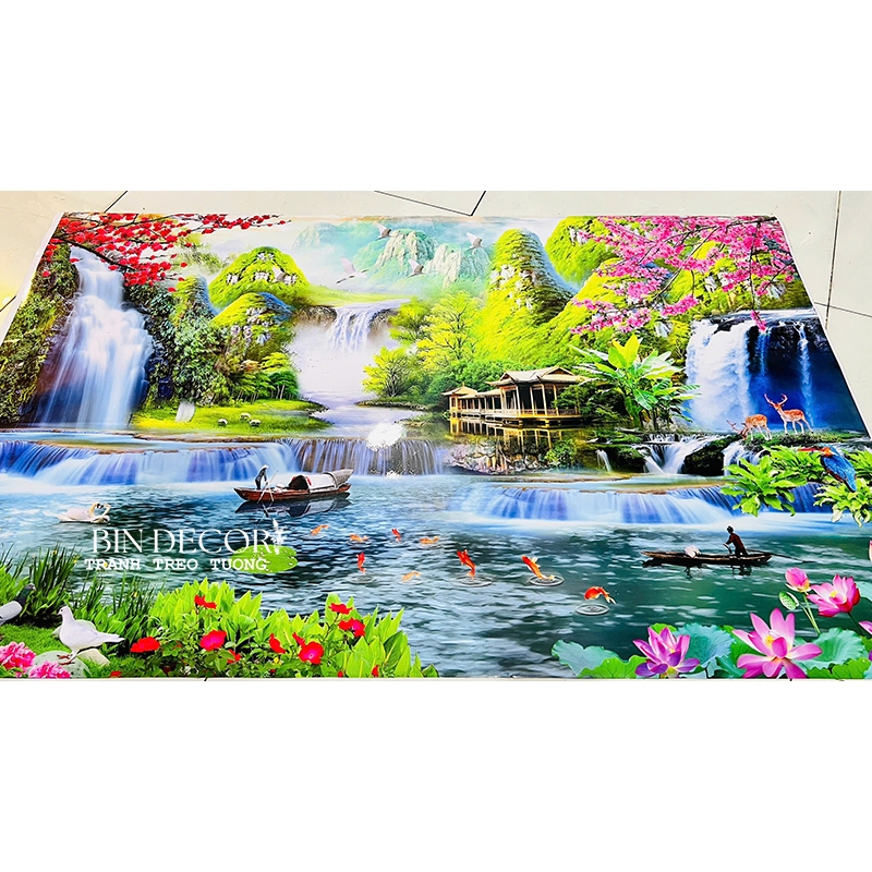 Tranh dán tường 3d được in từ giấy PP - ép lụa bảo vệ hình ảnh và chống thấm nước Chất lượng in TRÊN FILE GỐC đẹp và sắc nét Tranh dán có keo sẵn,chỉ