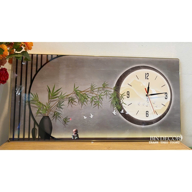 ✨(ẢNH THẬT) Tranh đồng hồ tráng gương cành trúc tranh phòng khách quà tặng tân gia BINBIN