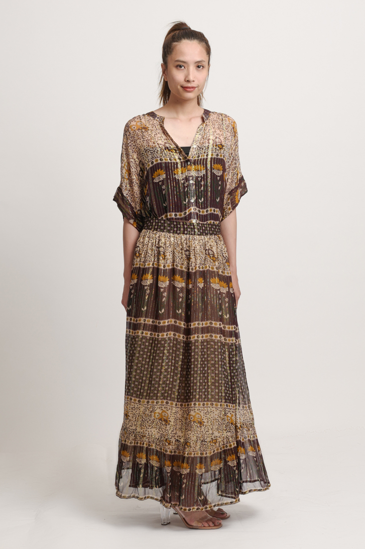 Áo cotton cao cấp, nền vải ánh kim nhẹ, màu ombre độc đáo. Phom suông, có thể mặc thành đầm dấu quần phối với quần short, hoặc mặc với quần jeans, quần legging. Dài 78cm.
