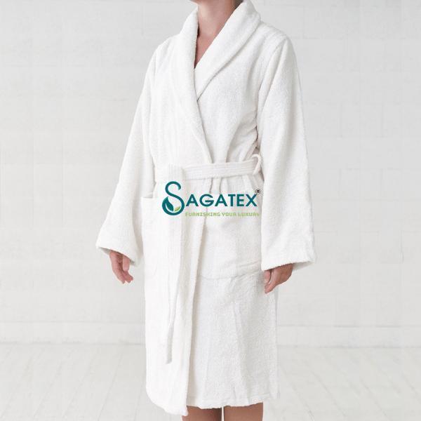 - ÁO CHOÀNG TẮM SAGATEX cao cấp mềm mại đạt tiêu chuẩn khách sạn 5 sao. ÁO CHOÀNG TẮM CAO CẤP SAGATEX với chất liệu hoàn toàn từ cotton dệt tổ ong cao cấp mang đến sự mềm mại và êm ái cho làn da. ÁO CHOÀNG TẮM TỔ ONG SAGATEX được dệt với kỹ thuật tiên tiến, đảm bảo độ bền cao sau nhiều lần giặt. ÁO CHOÀNG TẮM KHÁCH SẠN chịu được máy giặt công nghiệp với độ va đập mạnh. Dễ dàng giặt sạch và mau khô. Cấu trúc tổ ong của ÁO CHOÀNG TẮM SAGATEX giúp áo choàng tắm có khả năng lưu thông khí tốt, tạo cảm giác khô ráo và thoáng mát. Chất liệu cotton tự nhiên thấm hút mồ hôi hiệu quả, mang đến sự thoải mái cho người sử dụng. Áo choàng tắm tổ ong giúp giữ ấm cơ thể, tạo cảm giác thư giãn sau khi tắm.