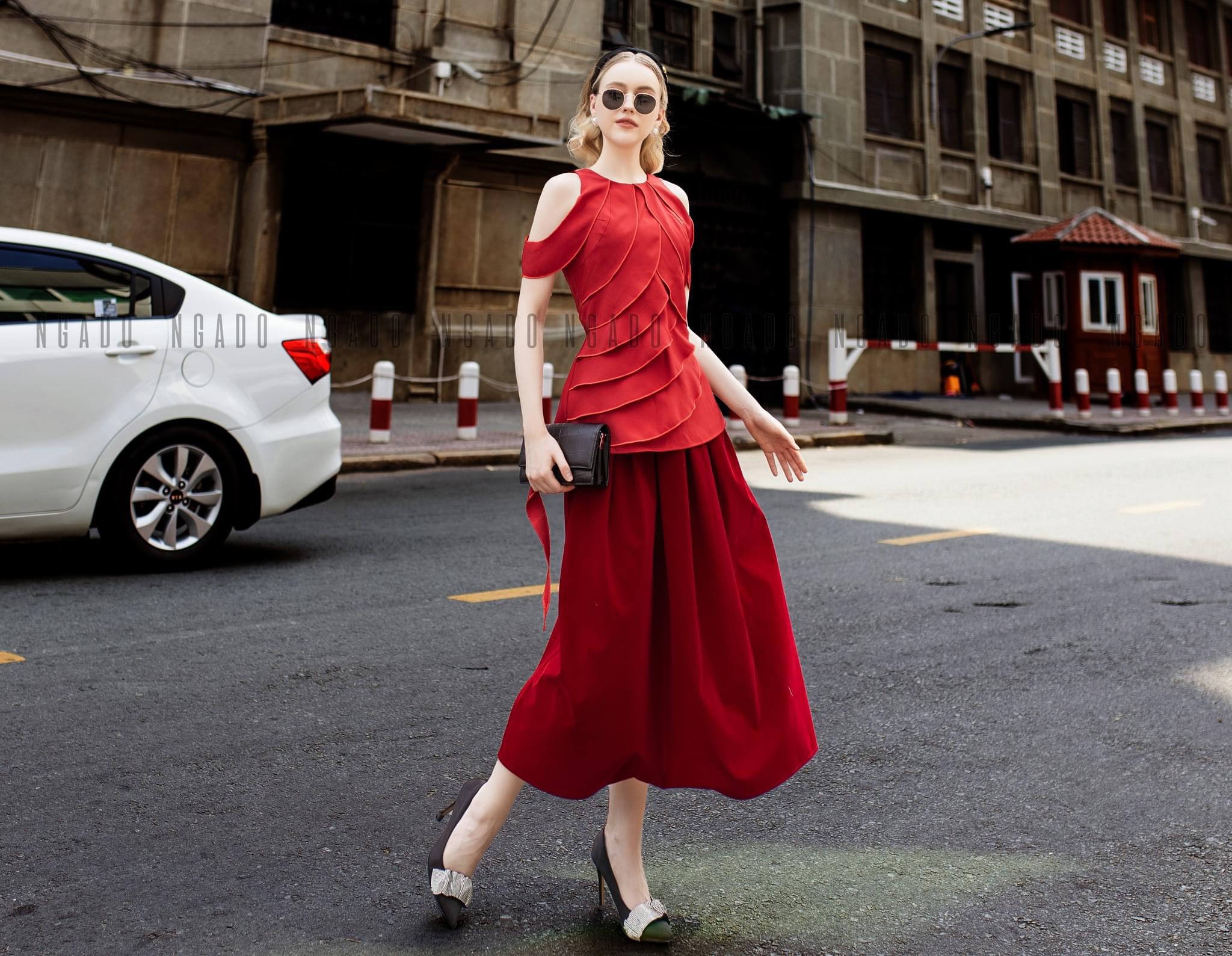 ღ THÔNG TIN SẢN PHẨM: Tên sản phẩm: Áo đỏ cổ khoét vai Màu sắc: Đỏ Chất liệu: Gân ý Chi tiết sản phẩm: không lót, không túi. Thông số