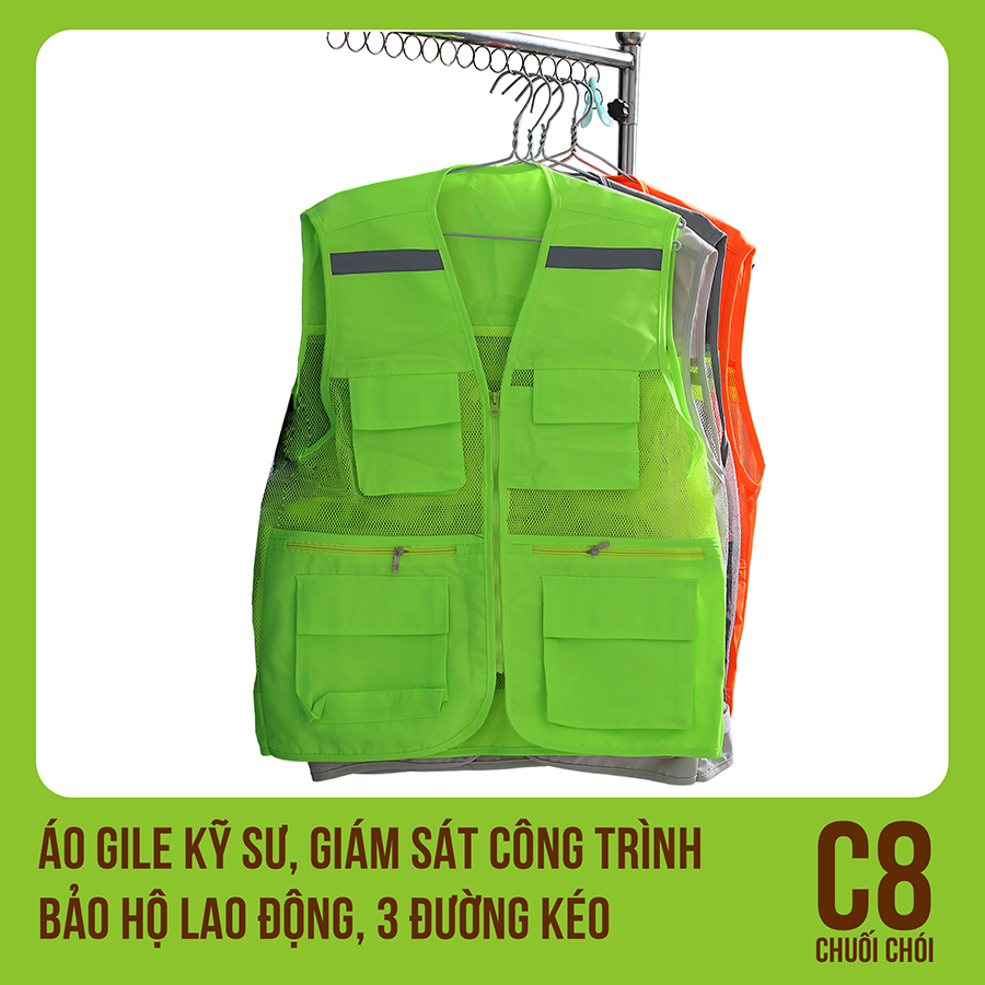 ✨Áo Gile Kỹ Sư, Giám Sát Công Trình, Bảo Hộ Lao Động, 3 Đường Kéo - Mã C8 (Chuối Chối)