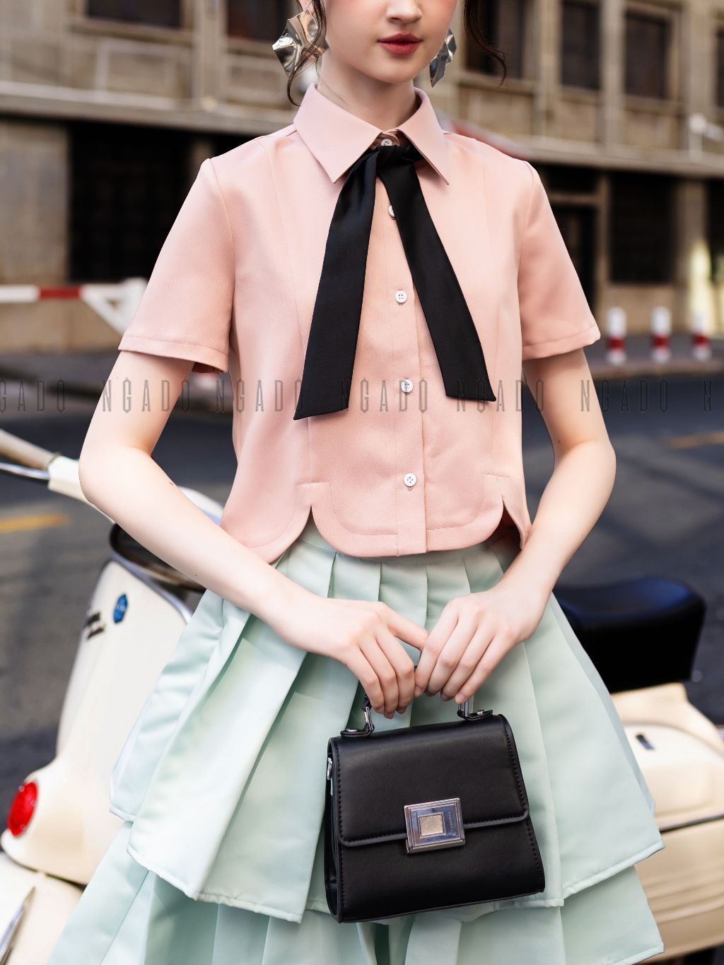 ✨Áo hồng ngắn tay NGADO, áo đi học, áo đi làm, áo sơ mi form rộng