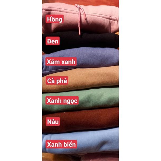 - Chất liệu: Nỉ bông cotton - Size: Freesize dưới 90kg - Form dáng unisex - Màu sắc: Trắng/ Kem/ Hồng/ Tím/ Xanh Vỏ Đậu/ Xanh Biển Tươi/ Đỏ Đô/ Đen