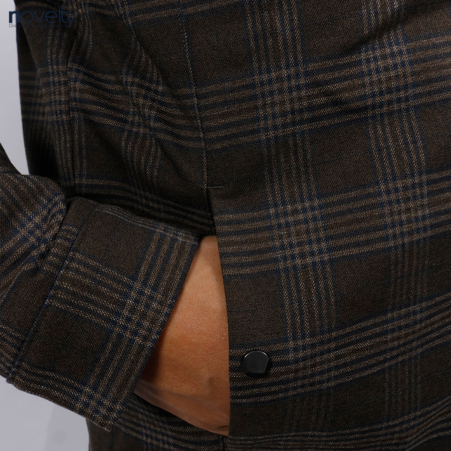 Áo Jacket nam 2 lớp cổ bẻ Novelty Casual caro nhỏ nâu đậm NJKMCNMT3B2305302