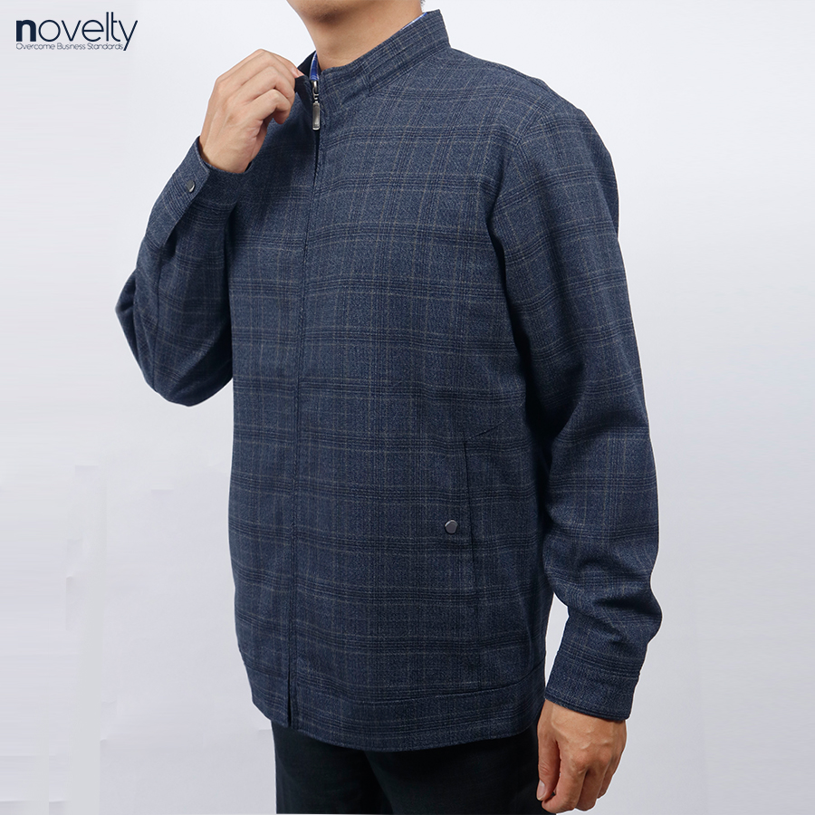Áo Jacket nam 2 lớp cổ trụ Novelty Casual caro lớn xanh đen NJKMCLMT3B2305642