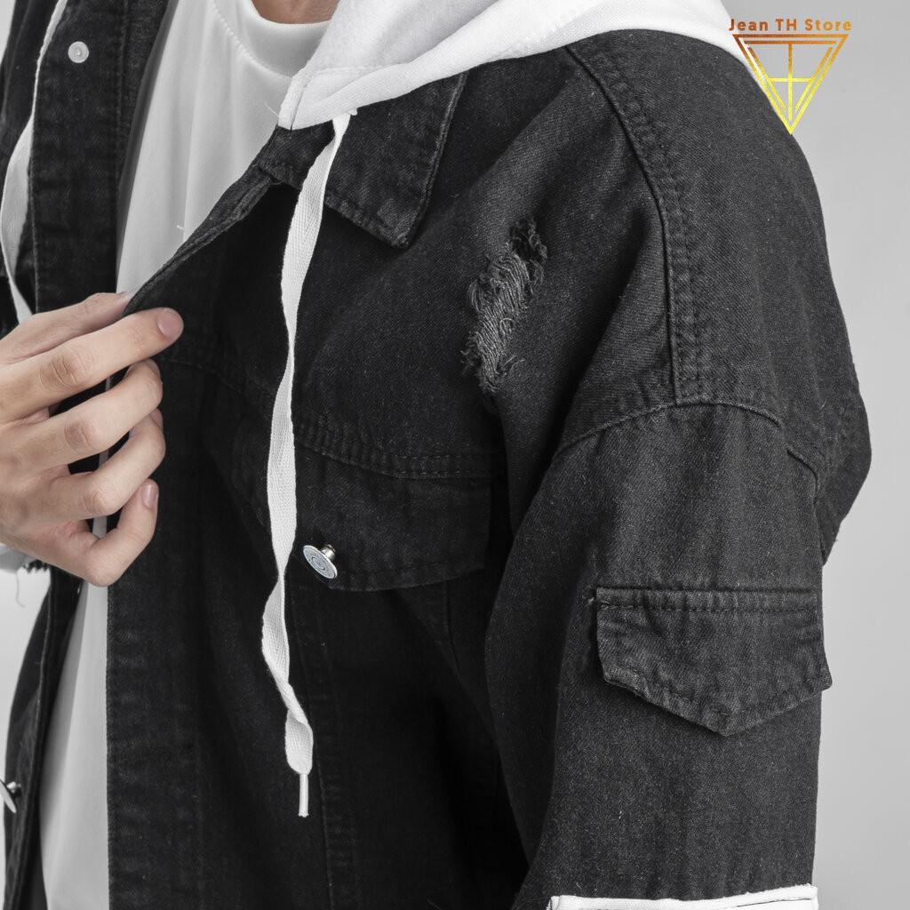 ✨Áo khoác jean nam đen phối nón nỉ trắng cao cấp phong cách trẻ trung