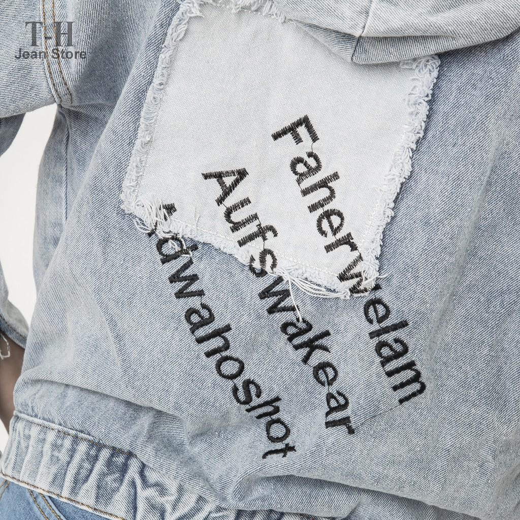 - Áo freesize (38kg - 62kg) Hướng dẫn sử dụng, bảo quản đối với sản phẩm áo khoác jean nữ có mũ đắp bạ thêu