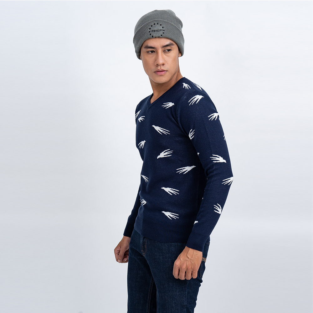 Áo len nam dài tay cổ tim màu đen in họa tiết NOVELTY 180565I với thiết kế họa tiết tinh tế, sang trọng và cá tính chắc chắn mang đến sự tự tin và thu