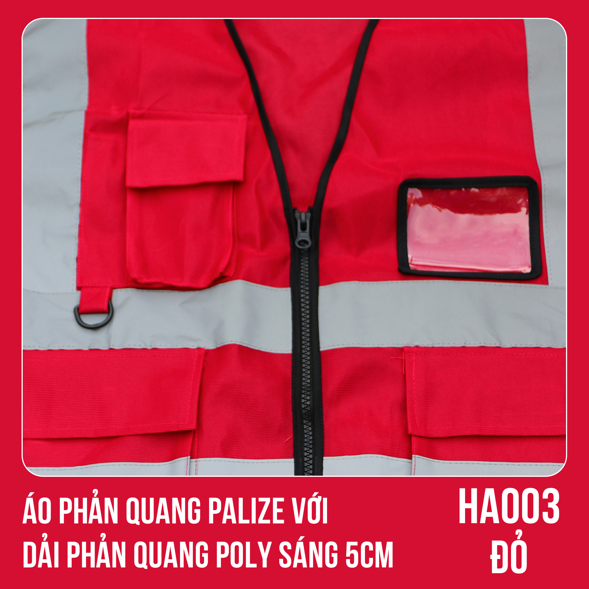 ✨Áo phản quang Palize với dải Phản quang Poly sáng 5cm màu ĐỎ - Mã HA003
