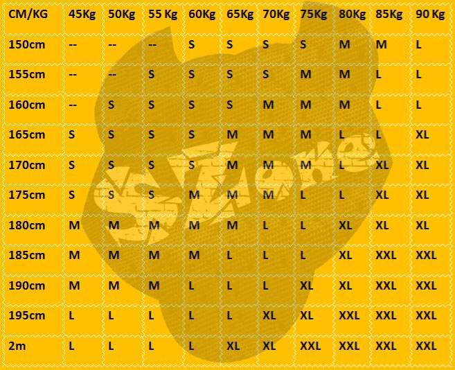 - Size XXL : 1m85- 2m ; 90 - 100 kg